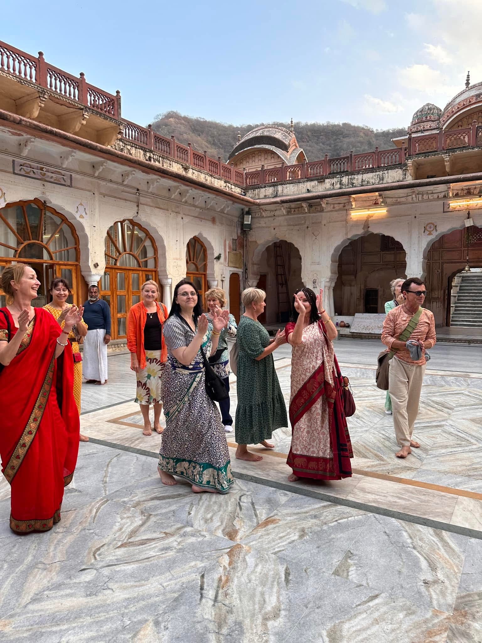 Для кого- то Индия распахнула свои объятия впервые. Я же, со сладостью наблюдаю за тем, как происходит это знакомство… и то, что чувствуют точно все – это открытость, чистосердечие, иногда детская наивность людей. Это неописуемо… И да, каждый видит то, что привёз с собой… что видим мы – искрящиеся глаза, уважение к тебе, как гостю, Guest like a God.., неописуемое ощущение свободы, доброжелательных, улыбающихся людей, которые говорят тебе – о, ты классно выглядишь в сари сделаем селфи ?😃 А наш гид в Джайпуре – Мукеш, начинает свой день с благословления Божеств .. его друзья присылают фото Божеств со всей Индии, со всех храмов. Он желает всем дорого утра, пишет Намасте, друг, и только так начинает свой рабочий день. )) 👌👌